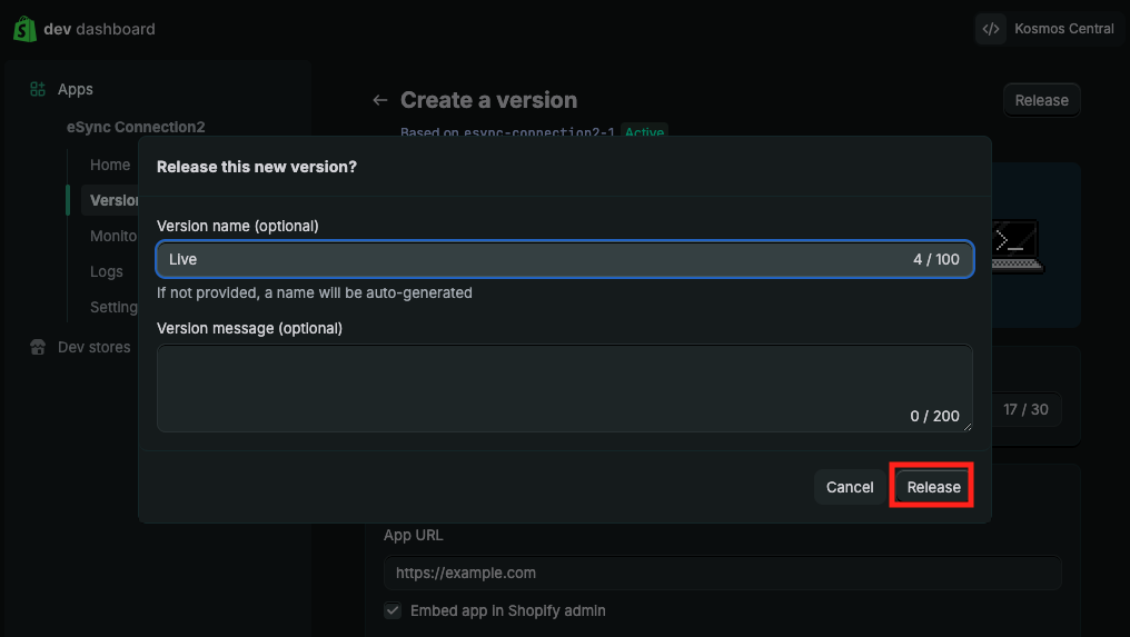Give your version a name (such as, Live) and click the Release button in the bottom right corner.