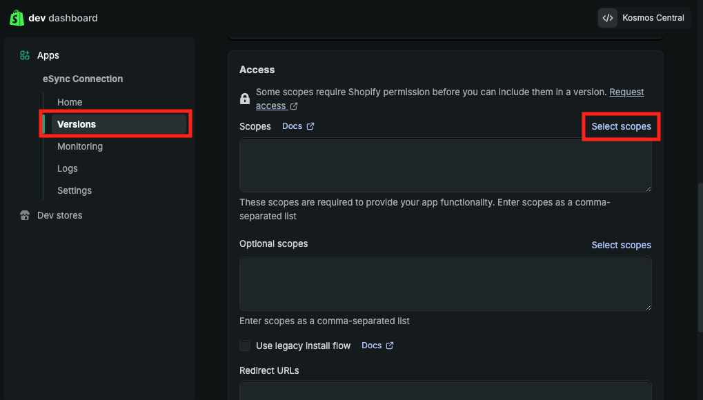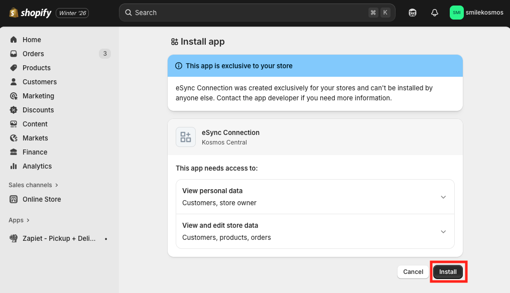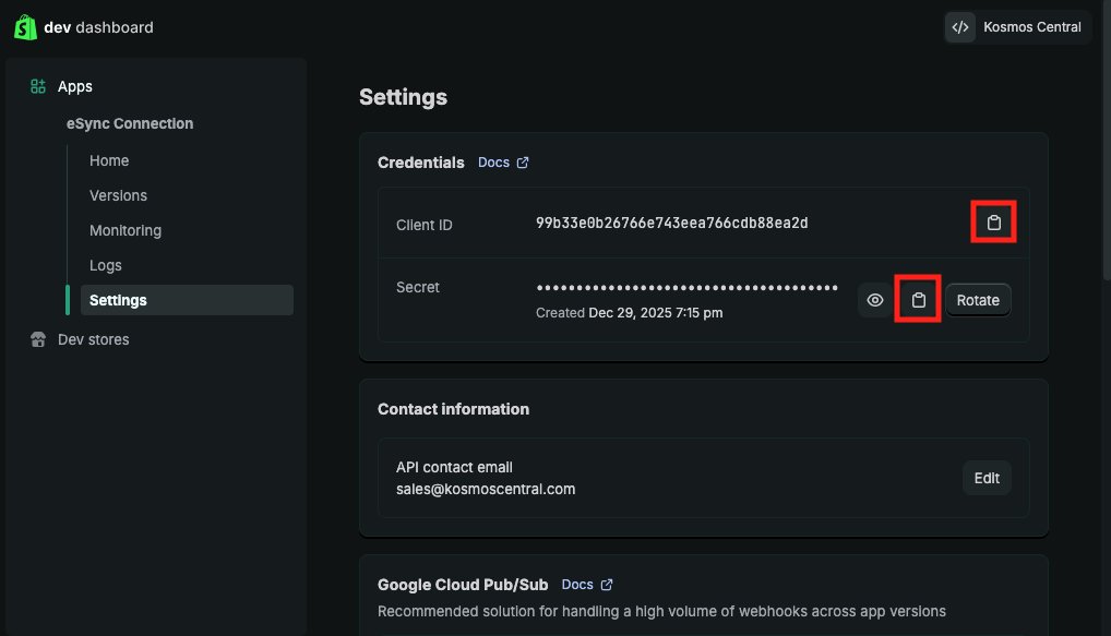 How to connect Shopify to Kosmos eSync