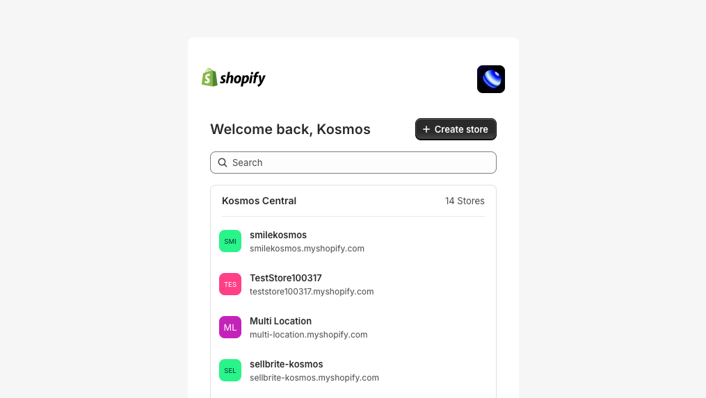If Shopify asks you to select an account, then click the Shopify account where you wish to install and activate the eSync Connection.