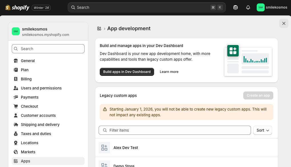 Next: click Build apps in Dev Dashboard.