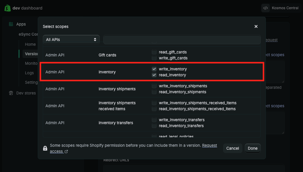 Admin API – Inventory: write_inventory and read_inventory
