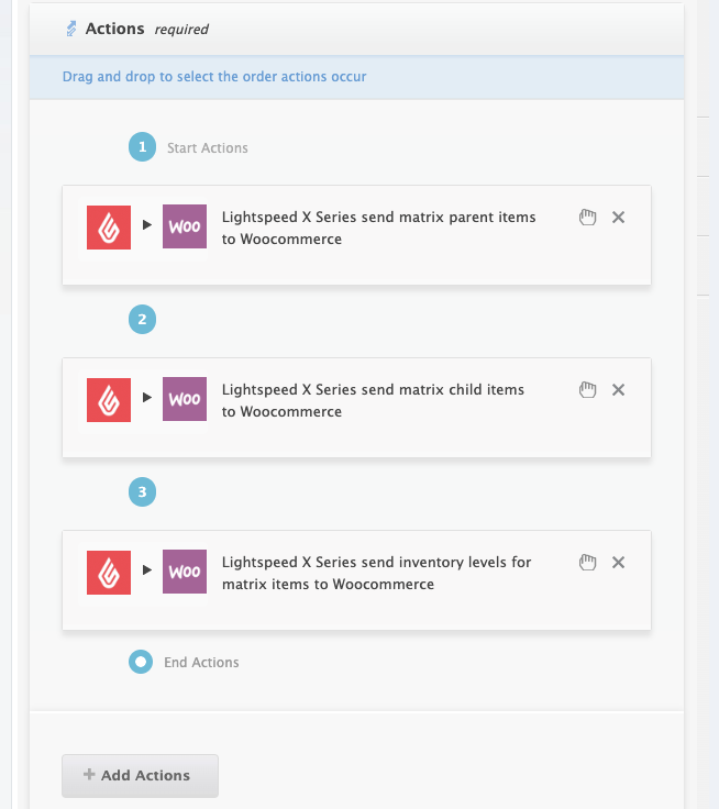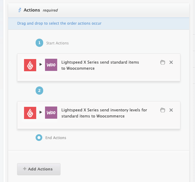 Configure each action and follow the ‘?’ instructions by hovering over the question marks.
