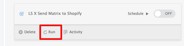 Note: The time stamp for creating products in LightSpeed is different from the time stamp to update inventory in LightSpeed. So, running your Send Products Action after a sale in your POS will not update inventory. You will need to RUN your Update Inventory Levels Action in this case.