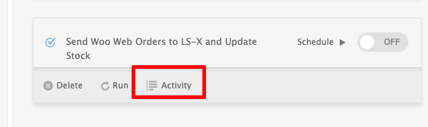 - Add both actions to a single task and run the task afterward. View your activity log results to see if any orders or records were retrieved.